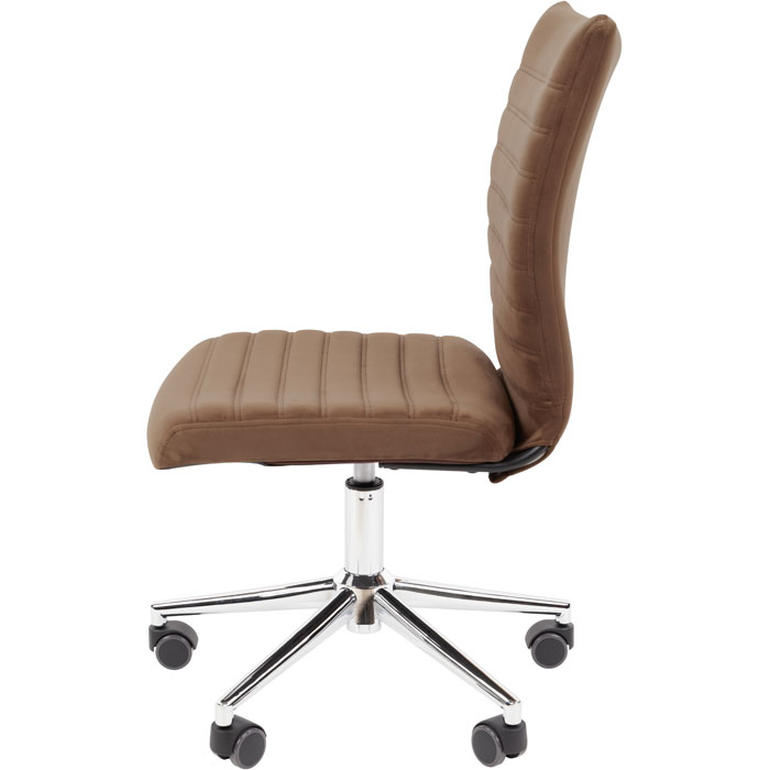 Кресло для оператора CHAIRMAN 033 (велюр T‑14, коричневый) — уют и надёжность в лаконичном дизайне! Благородный коричневый оттенок велюровой обивки добавит интерьеру солидности и легко впишется в любой стиль — от гостиной до домашнего кабинета или спальни. Компактная модель без подлокотников сэкономит пространство, а регулировка высоты обеспечит индивидуальный комфорт. Прочный металлический каркас и хромированная крестовина гарантируют устойчивость, полиуретановые ролики — бесшумное перемещение. Мягкая набивка поддерживает удобную посадку, а двухлетняя гарантия подтверждает долговечность. Выберите кресло, которое создаст атмосферу уюта на долгие годы!