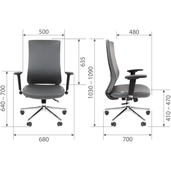 Кресло для оператора CHAIRMAN 500LUX БП, экокожа, серое: комфорт премиум‑класса для продуктивной работы