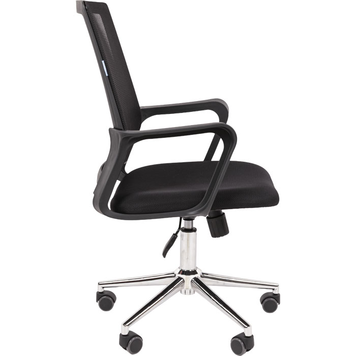 Строгое кресло CHAIRMAN 606 ХРОМ TW в универсальном чёрном цвете — идеальное решение для современного офиса. Лаконичный дизайн с сетчатой спинкой и тканевым сиденьем выглядит профессионально и гармонично вписывается в любой деловой интерьер, а металлическая хромированная крестовина добавляет модели современности и создаёт эффектный контраст.