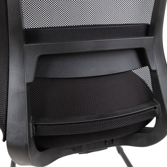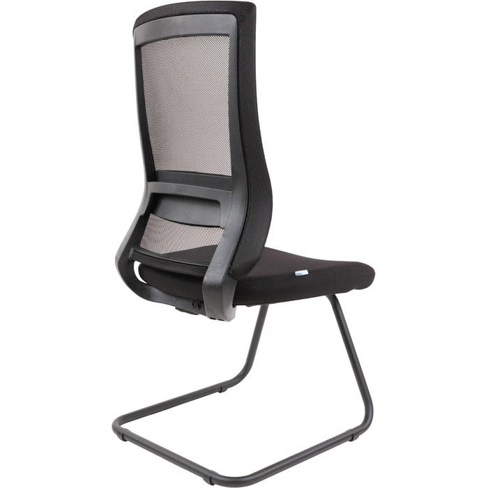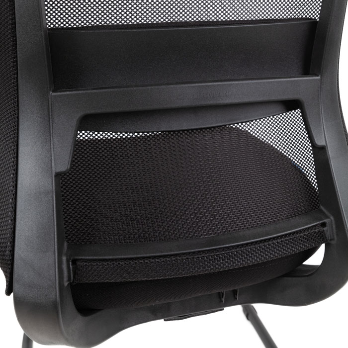 Лаконичный дизайн с сочетанием сетки и ткани выглядит профессионально: сетчатая вставка обеспечивает вентиляцию, а тканевые элементы добавляют мягкости. Чёрный оттенок подчёркивает деловую атмосферу и легко сочетается с офисной мебелью.
