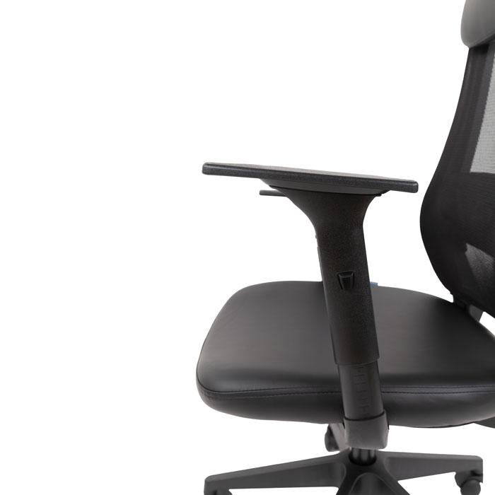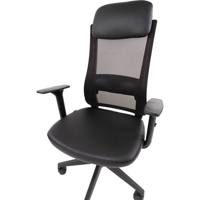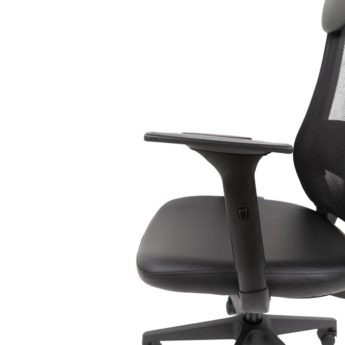 Комфорт обеспечивают регулируемый подголовник, подлокотники и механизм с синхронным отклонением спинки и сиденья — легко настроить кресло под себя и снять напряжение в перерывах. Плавная регулировка высоты помогает сохранить правильную осанку.